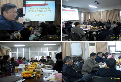 周平向学科办领导汇报了学院在学科建设、师资队伍建设、人才培养等方面的现状、问题和目标。翟启杰指出当前亟待解决的问题和渠道,并表示学科办会积极支持学院的发展。与会教授们就各自的研究领域发表看法、提出问题和建议等,为学院学科建设出谋划策。