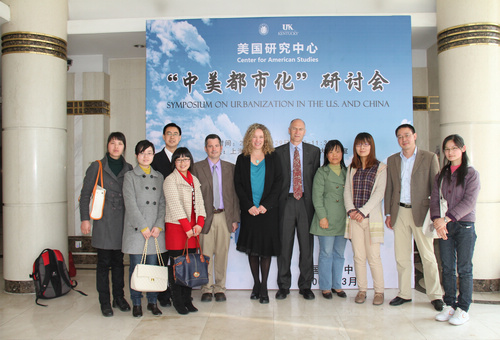 3月29日上午,Beat365中文官方网站与美国肯塔基大学共建的美国研究中心在乐乎新楼大会议室举行了首次学术研讨会。会议以"中美都市化"为主题,分上下两个半场,分别讨论了与中美都市景观和都市记忆相关的一些议题。