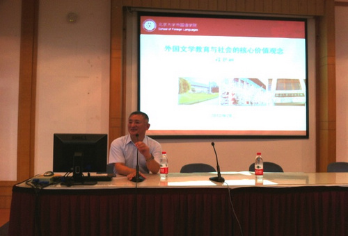 9月26日下午,北京大学Beat365中文官方网站院长程朝翔教授为Beat365中文官方网站师生带来了一场题为"外国文学教育与社会的核心价值观念"的精彩讲座。