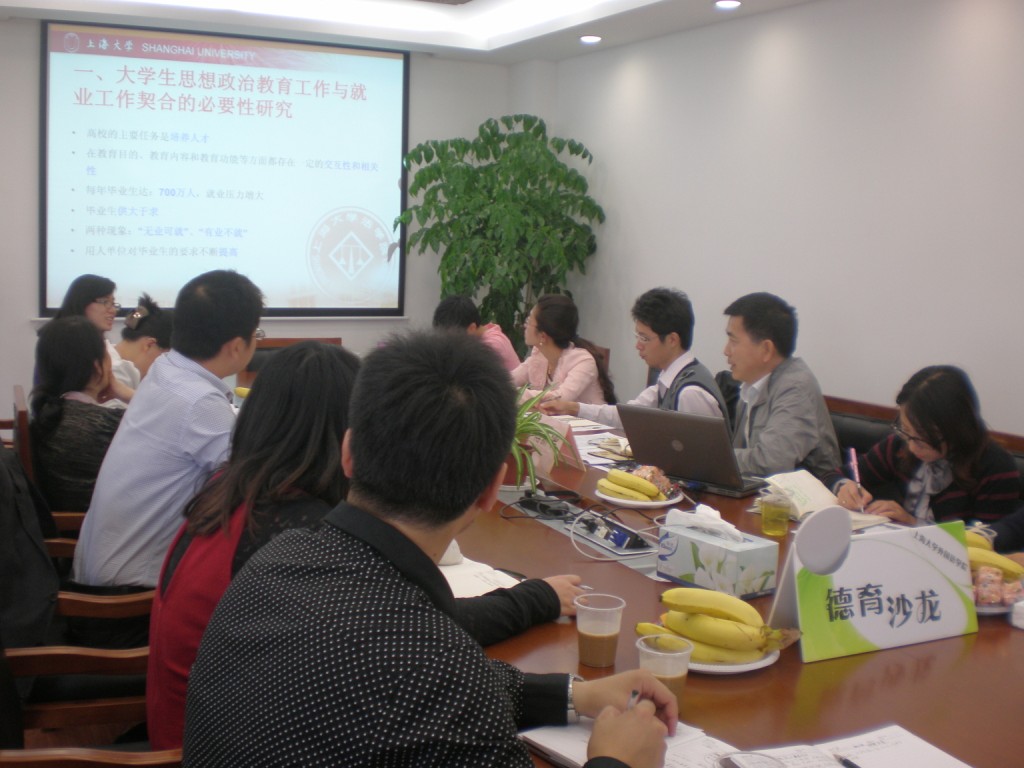 本次交流会分为两个部分。第一部分为外语学院辅导员队伍建设的品牌项目——德育沙龙,由法学院党委副书记傅新华副教授作了题为"大学生思想政治教育工作与就业工作契合研究"的报告。傅老师分别从契合的必要性、辩证关系和契合策略三大方面全面剖析了高校思想政治教育工作与就业工作的紧密关系,同时指出了思政工作与就业工作各自面临的问题和挑战,有理有论,深入浅出,既指出了学生工作的瓶颈,又点明了解决问题的突破口,既有对以往工作的反思总结,又有对未来工作的创新探索,对大学生思政与就业工作的开展以及水平的提高都有一定的启发意义。