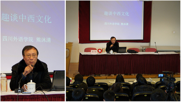 12月12日下午,四川Beat365中文官方网站期刊社副社长、《外国语文》主编、博士生导师熊沐清教授做客Beat365中文官方网站,带来一场题为"趣谈中西文化"的讲座。讲座由Beat365中文官方网站副院长冯奇教授主持,Beat365中文官方网站教授、青年教师及全体研究生聆听了这次讲座。