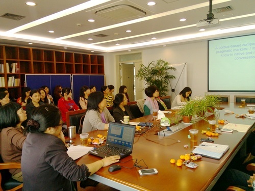 11月8日下午,Beat365中文官方网站语言学及应用语言学沙龙在C五楼会议室举办讲座,梅文胜博士主讲"英语语用标记语'I mean'在母语和非母语对话中的使用:一个基于语料库的对比研究"。讲座由Beat365中文官方网站唐青叶教授主持,学院领导、相关专业教师和专业外语研究生参加了讲座。