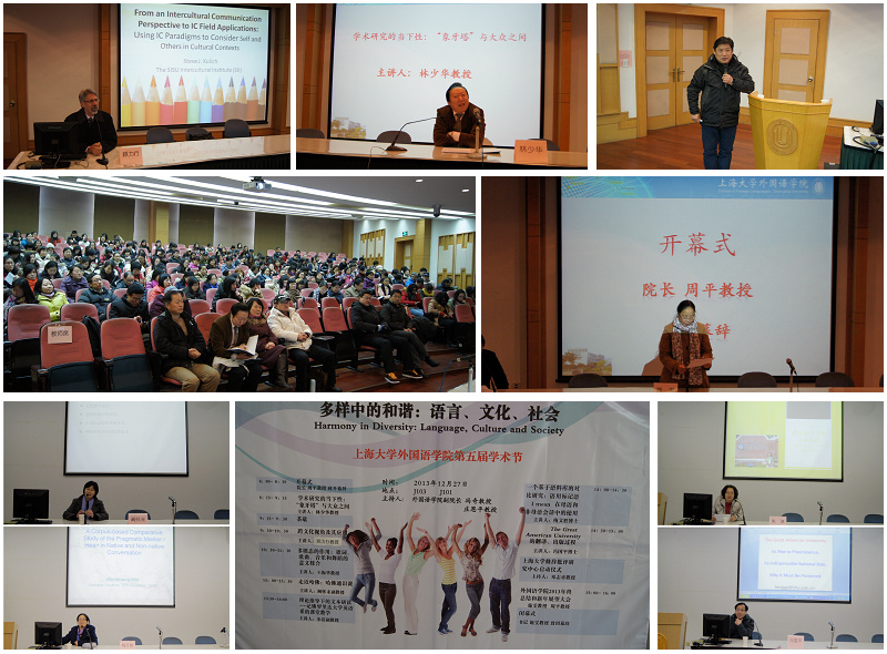 12月27日第五届Beat365中文官方网站学术节于在J103隆重召开。本届学术节以"多样中的和谐:语言、文化、社会"为主题,设专家论坛与回国学者论坛两场讨论。参加此次学术节开幕式的特邀专家有著名文学家、翻译家林少华教授,国际知名专家、上海外国语大学跨文化研究中心执行主任顾立行教授和上海交通大学Beat365中文官方网站王振华教授。开幕式由Beat365中文官方网站副院长冯奇主持,院长周平教授致开幕辞,书记施雯教授致闭幕辞。与会各位专家学者与外院师生热烈讨论了全球化背景下如何结合本土现状开展学术研究、教学和课程设计等问题,师生们拓宽了视野、丰富了理论视角,同时加深了问题意识。