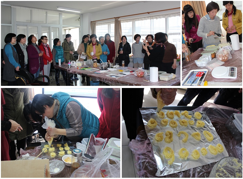 "烘焙,从一块饼干开始"。郑醒芝老师化身金牌烘焙师,手把手的教大家制作蔓越莓饼干和曲奇饼干。通过学习,大家了解了如何发面,打发奶油,用料比例,接着是选择模型、模具按压。然后大家分为亲自制作曲奇饼干。女教师们首先把黄油软化,倒入糖分等搅拌均匀,打发黄油、鸡蛋、筛入低筋面粉。待面糊准备好后,用裱花袋将面糊挤在烤盘上,送入烤箱。十分钟后金黄色的曲奇饼干美味出炉。整个烘焙过程让女教工们欣喜不已,欣赏着亲手制作的饼干,大家纷纷拍照留念,享受DIY烘焙带来的幸福时光。结果本应上午结束的活动,由于大家兴致持续高昂,烘焙活动整整持续了一天,直到大家用完最后一点面粉。