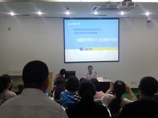 讲座分为两个部分。第一部分围绕外国语言文学学科《十二五》规划的一些思路,戴炜栋教授主要谈了四个方面:《十二五》规划的文件依据、教育部高教司和社科司的不同分工、外指委的一些重大措施和社科委语言文学学部的一些思路。戴炜栋教授指出,在科研方面外国语言文学学科研究主要遵循六个字的原则,即研究、服务和管理。扩展开来则是:1)加强外国语言文学学科建设,在基础研究和传统研究领域取得突破;2)对接国家发展战略,加强实用研究,服务社会;3)创新科研组织、项目管理与成果评价模式。