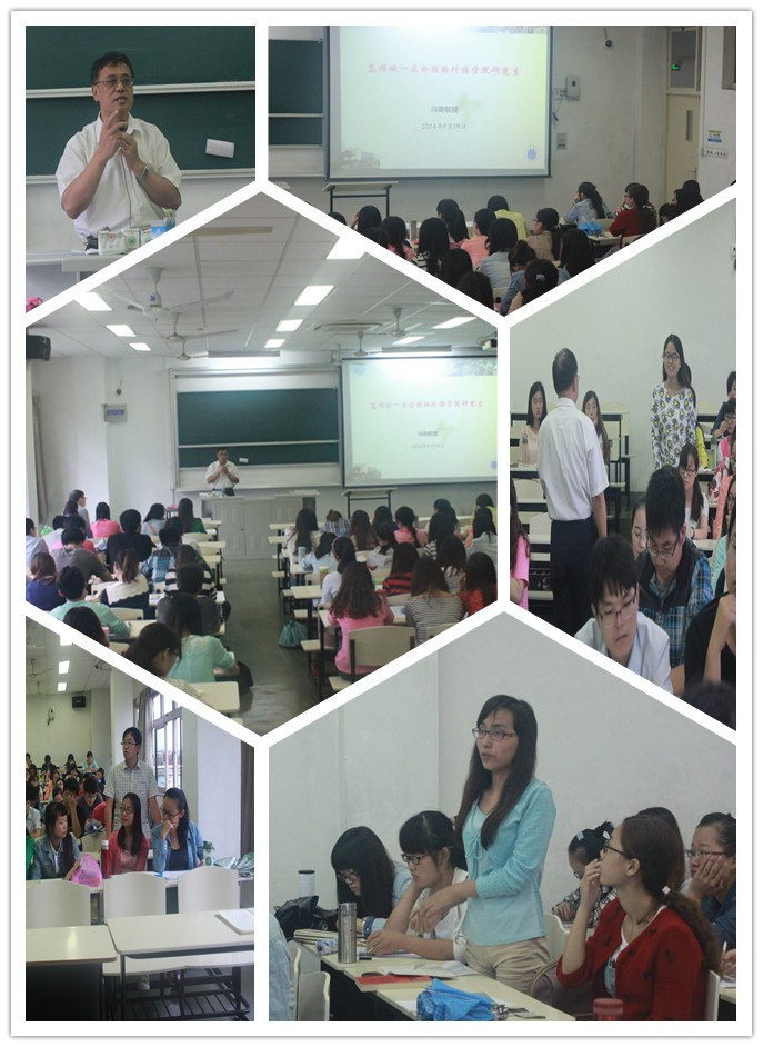 9月19日下午,Beat365中文官方网站研究生党总支在CJ204举行了一场"怎样做一名合格的外语学院研究生"的主题讲座。Beat365中文官方网站副院长冯奇教授出席了此次活动并与大家进行交流。2014级外语学院全体研究生新生参与了本次讲座活动,活动由2013级研究生梁苗主持。
