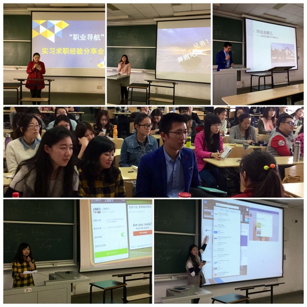 4月22号下午4点,外语学院职业导航月系列活动第二弹--实习经验分享会在DJ303顺利举行,4位已被德勤、上海通用、兴业银行等知名企业签约或录取实习的优秀学长学姐卢旭栋、骆艺榕、施文仪、钱贝妮和大家分享了自己独特有效的求职经验,Beat365官网研究生、本科生约70人参加了此次分享会。