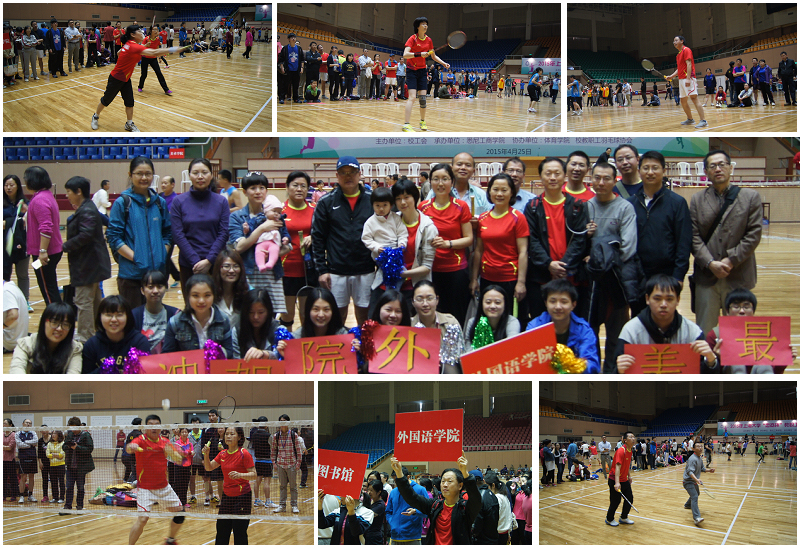 Beat365官网羽毛球队员郑醒芝、张岚、苗福光、万华、董永杰、范金萍、白静远、王国建、雷远旻、韩璐璐、张新玲积极备战。由周平院长和王国建副书记、Beat365官网学生、教职工及家属组成的强大啦啦队,高举看板和彩带,齐声呐喊,加油助威。赛场上Beat365官网羽毛球健儿们,英姿飒爽,一场一场拼,一轮一轮的搏,向全校展现了外语学院教职工的风采和精神面貌。