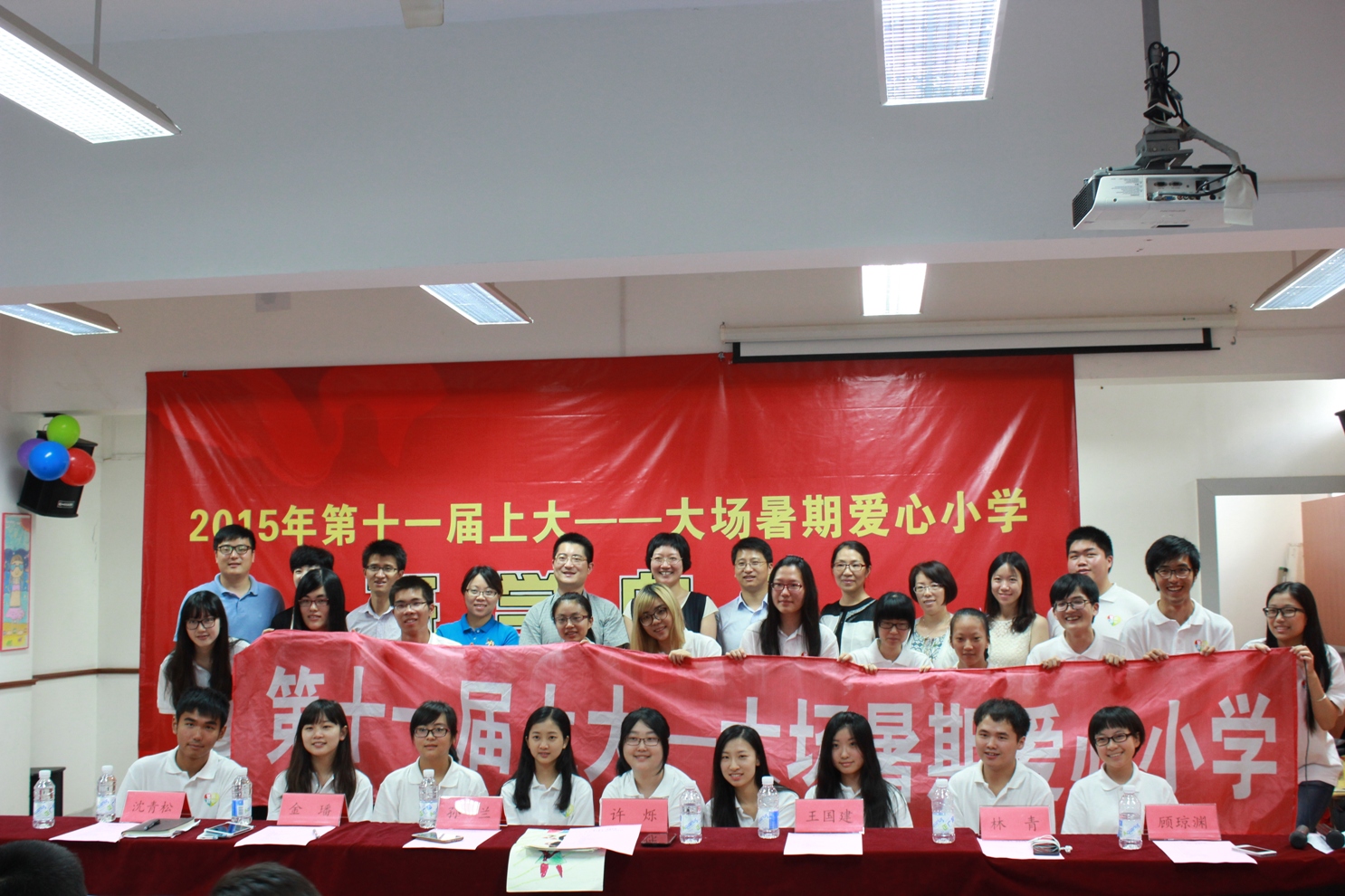 7月10日上午,"爱心接力,传递梦想"第二届上大——大场"爱心暑托班"暨第十一届上大——大场暑期爱心小学开班典礼在宝山区民办山海小学五楼大礼堂隆重举行。校团委书记许烁、宝山团区委书记孙兰、校Beat365中文官方网站党委副书记王国建、团市委联络员金璠、大场镇党委委员、宣传科科长林青以及大场镇团委、山海小学、院团委的主要同志一同出席了开班典礼。
