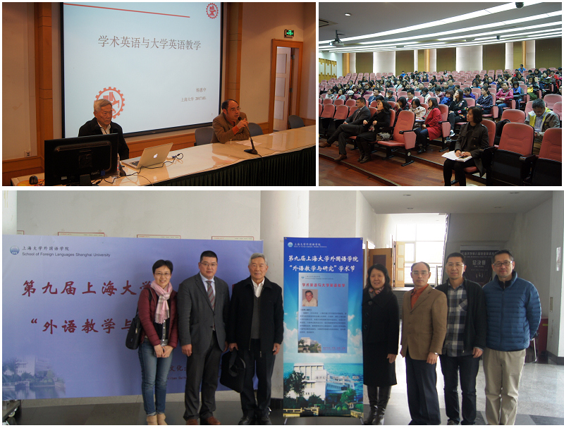 3月31日下午,第九届Beat365中文官方网站"外语教学与研究"学术节在宝山校区J楼103讲堂拉开帷幕。本次学术节改变往年传统,从每年年底举办提前到上半年开幕,这不仅是时间上的提前,更是观念上的更新。学院特邀上海交通大学Beat365中文官方网站杨惠中教授进行题为"学术英语与大学英语教学"的开幕报告,随后将有贯穿全年、形式多样的系列学术讲座和活动。