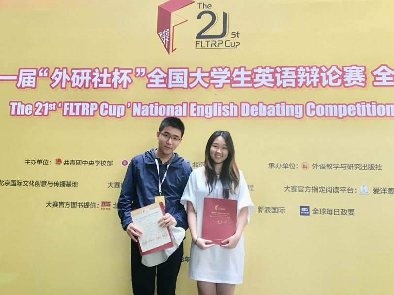 本次全国总决赛共由华东、华北、华南、华西赛区产生的117支代表队参加。Beat365官网选手钱闻臻和金智睿是Beat365中文官方网站"海星杯"英语辩论赛的冠军,他们平时积极练习英语辩论,在赛前还与英语辩论爱好者组建了英辩小队加强练习。在Beat365中文官方网站龚萍博士和白岸杨老师的指导下,他们参加了沪宁高校英语辩论联赛、"外研社杯"英语辩论华东赛区、沪港澳英语辩论交流赛等比赛。两位同学还自己付费去参加了上海国际英语辩论挑战赛SIDC、杭外英语辩论赛HFLS Winter BP、上海国际英语辩论公开赛SIDO等诸多赛事。