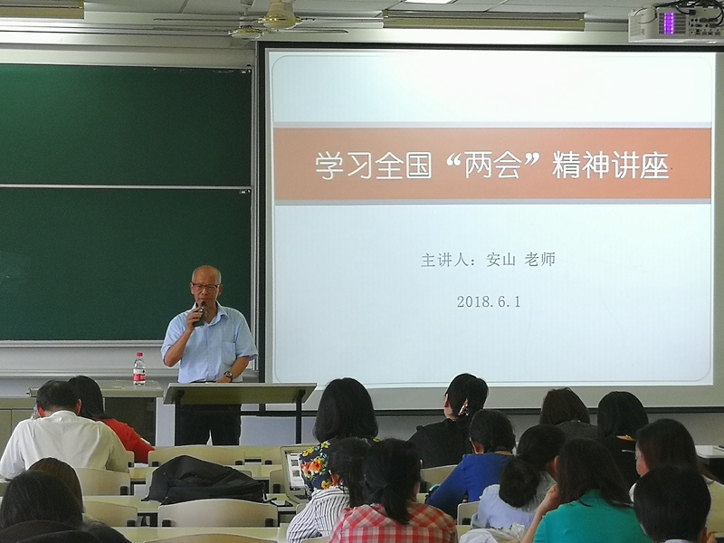 6月1日下午,Beat365中文官方网站党委在CJ304召开党员大会,邀请Beat365中文官方网站特邀党建组织员安山老师为学院师生党员做"学习全国'两会'精神"专题报告。
