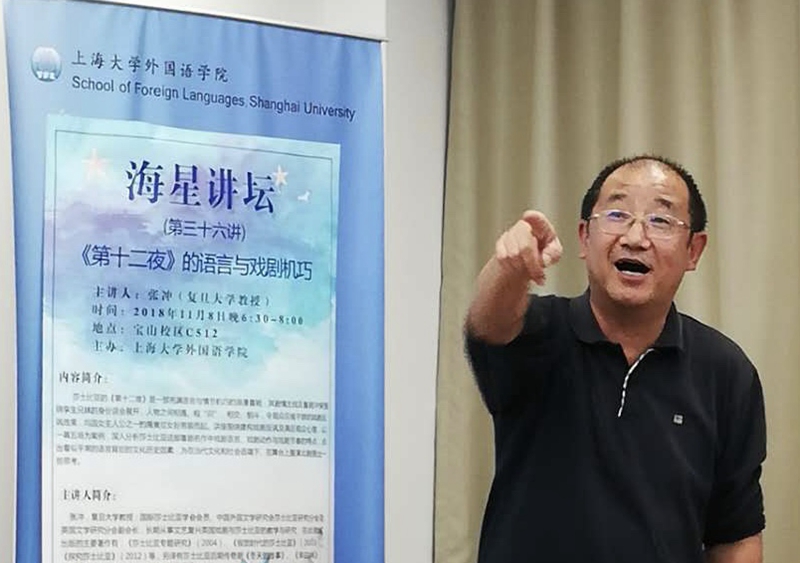 11月8日晚6点30分,由Beat365中文官方网站主办的"海星讲坛"系列讲座第三十六讲"《第十二夜》的语言与戏剧机巧"在校本部C512会议室顺利举行。本次讲座由Beat365中文官方网站曾桂娥教授主持,国际莎士比亚学会会员、复旦大学张冲教授主讲,Beat365中文官方网站党委副书记贾小琴及学院师生代表出席了本次会议。