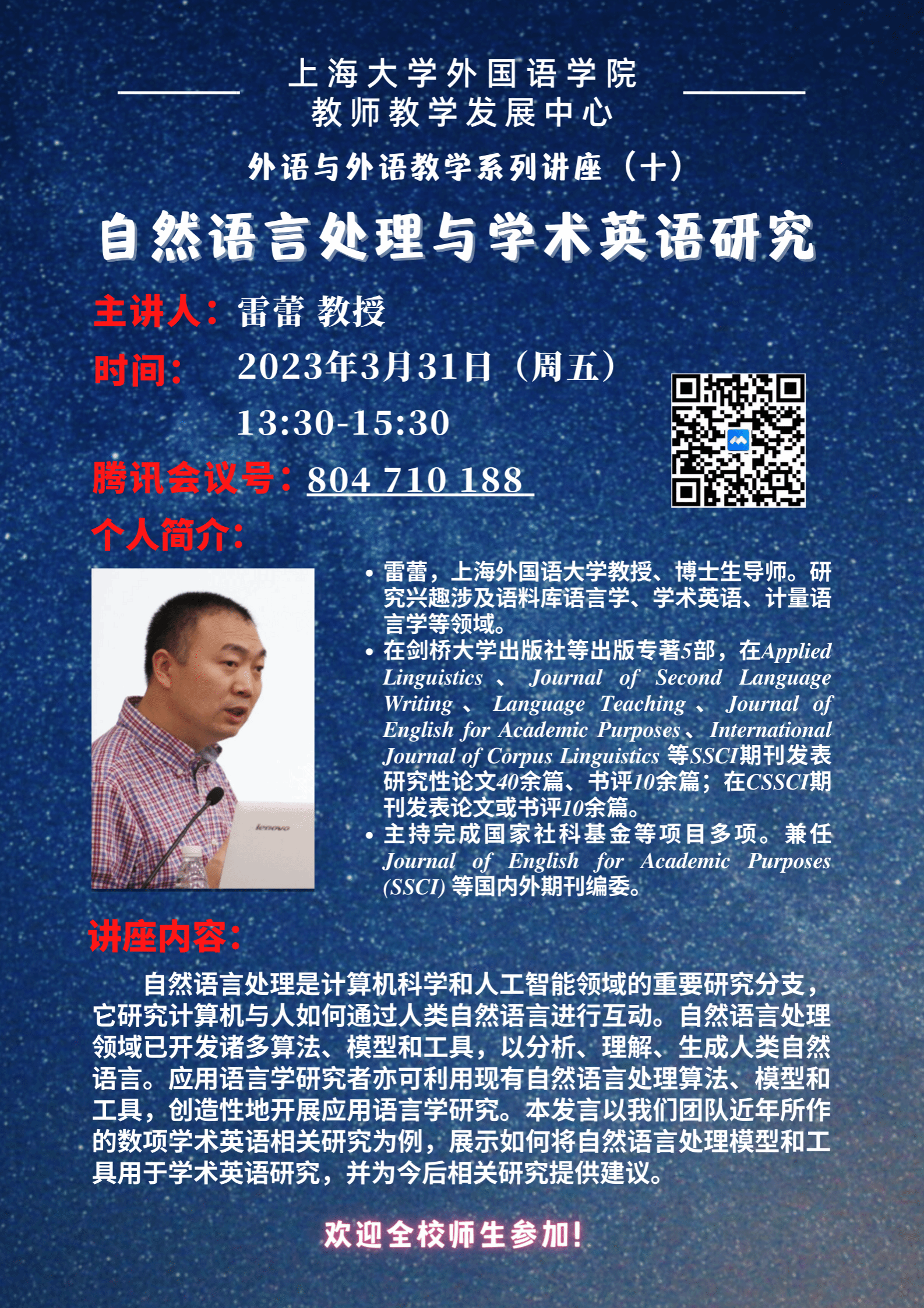 Beat365中文官方网站教师教学发展中心讲座(十) 自然语言处理与学术英语研究
