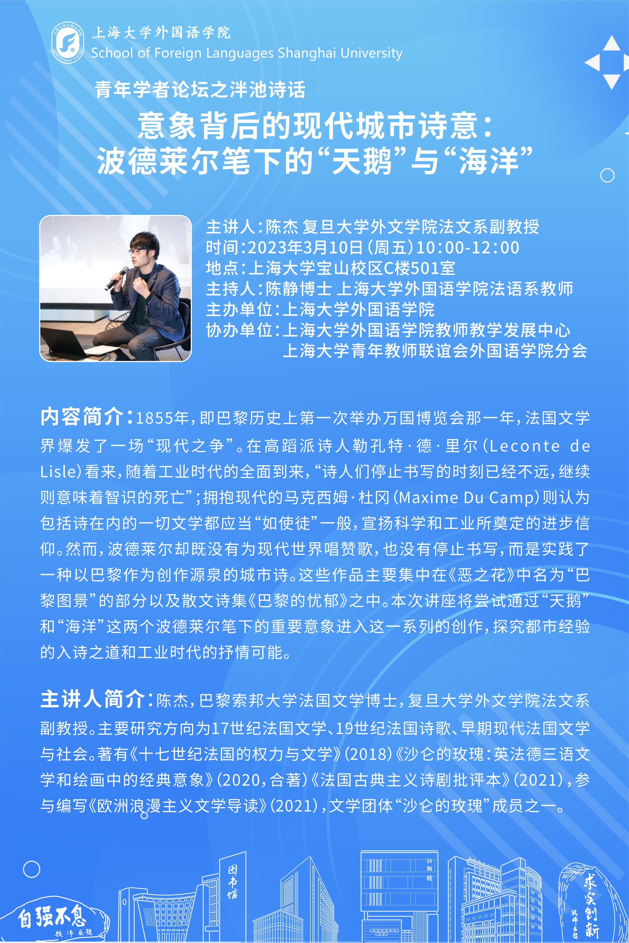 青年学者论坛之泮池诗话 意象背后的现代城市诗意:波德莱尔笔下的“天鹅”与“海洋”