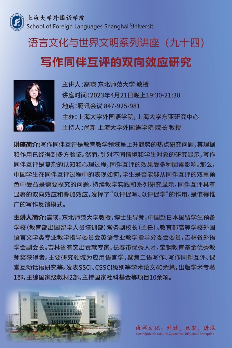 “语言文化与世界文明”系列讲座(九十四)写作同伴互评的双向效应研究