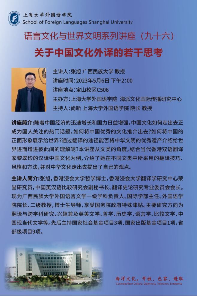 “语言文化与世界文明”系列讲座(九十六)关于中国文化外译的若干思考