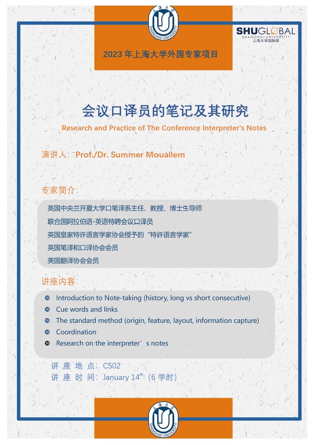 2023年Beat365中文官方网站外国专家项目:会议口译员的笔记及其研究