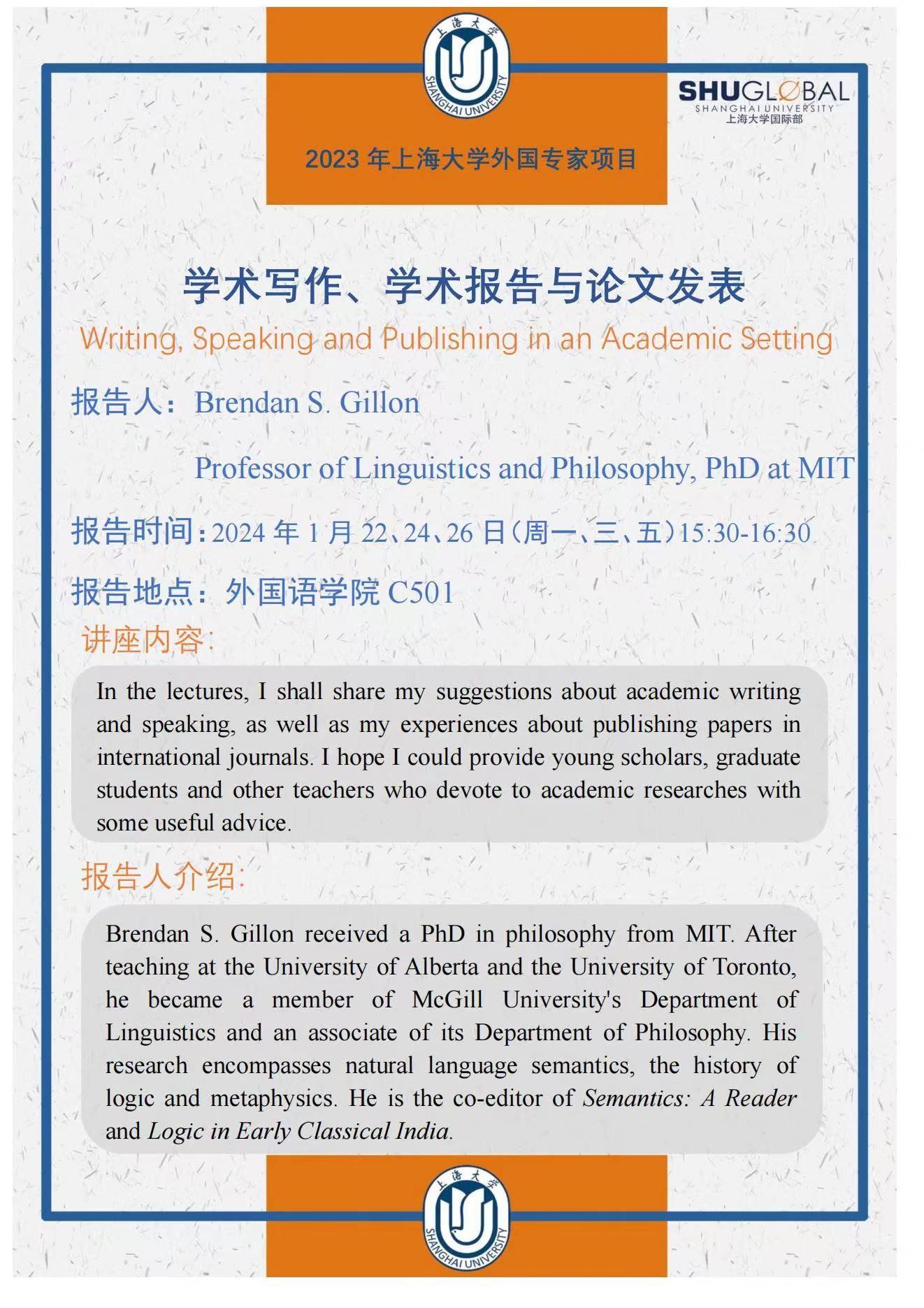 2023年Beat365中文官方网站外国专家项目:学术写作、学术报告与论文发表
