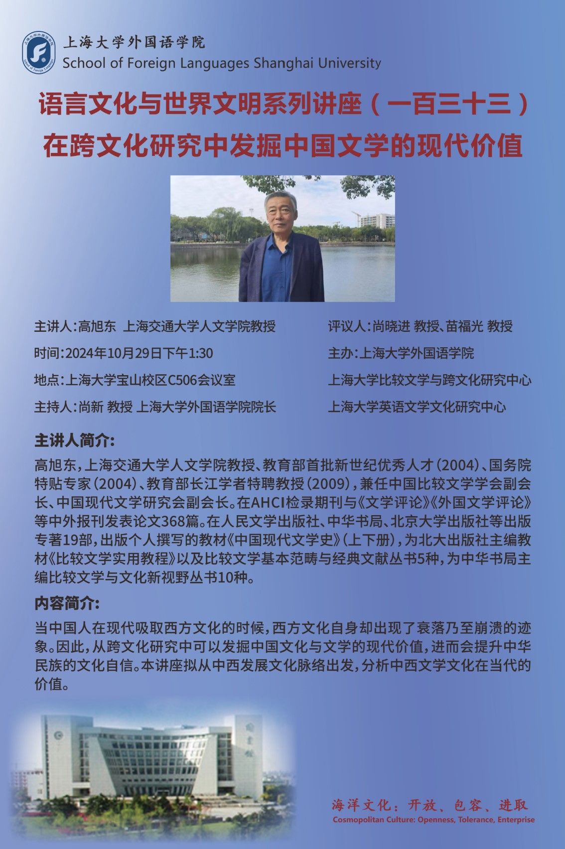 “语言文化与世界文明”系列讲座(一百三十三期) 在跨文化研究中发掘中国文学的现代价值