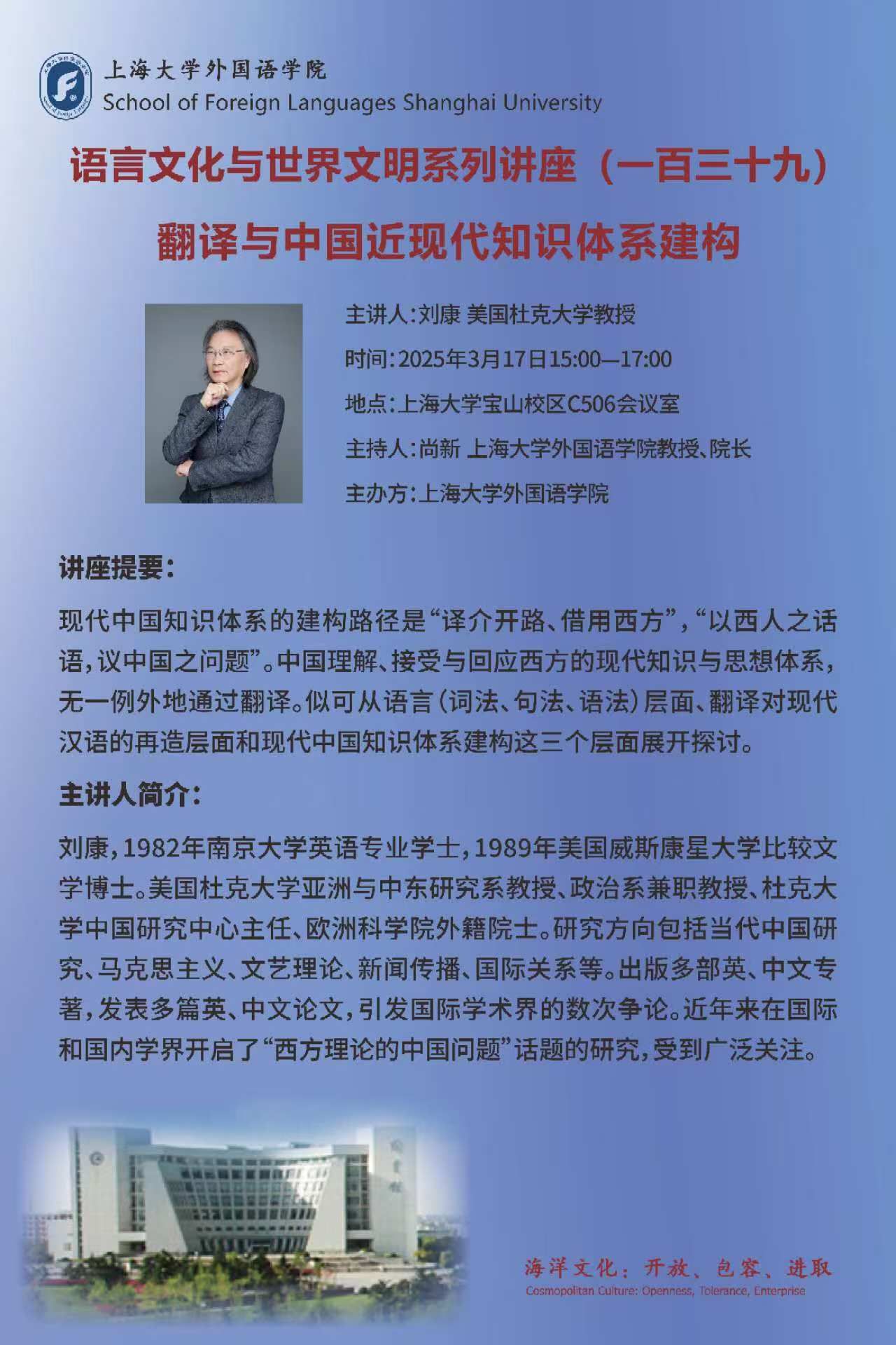 上一条:Beat365中文官方网站外国专家大讲堂:加拿大麦吉尔大学Philip Buckley教授“World, Language, Translation”专题系列讲座 下一条: “语言文化与世界文明”系列讲座(一百三十三期) 在跨文化研究中发掘中国文学的现代价值