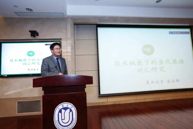 第一位演讲人是复旦大学外文学院高永伟教授,他的题目是“技术赋能下的当代英语词汇研究”。当代英语词汇研究的领域包括构词法的研究、新词产生的内在机制及其传播和接受度、临时用词、外来词、习语、术语和词义的演变。其中构词法的研究是词汇研究领域的重中之重,我们还可以从语料库和传播学等视角展开对词汇的研究。科学技术也给词汇研究带来了不少启发,如词典编写平台TLEX的应用等。