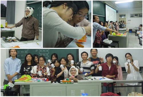 这次活动不仅有中日两国的同学共同参加,还邀请来了人民中国杂志社东京支局的特约记者岡田先生,教同学们日本的传统折纸--千纸鹤,青蛙,以及创意折纸--熊猫。岡田先生在上课时还带起了熊猫小帽子,十分可爱。同学们在发挥自己动手能力的同时,也了解到关于日本男孩节的传统文化习俗,以及相关日语单词和会话。活动最后,大家拿出各自发挥创造力折出的纸飞机进行展示比赛。