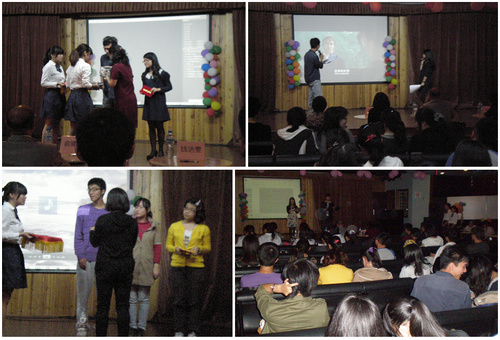 经过初赛的选拔,脱颖而出的七支队伍分别上台先用英语自我介绍,展现个性风采。比赛时先展示和表演事先精心准备的自选配音片段,然后表演临时准备的规定配音片段。选手们彼此配合默契,实力不相伯仲。在比赛之余还穿插精彩的"我爱看电影"游戏小节目,场内气氛活跃。每队选手比赛后,评委们针对每位选手的表现做了专业的点评并给出指导建议。