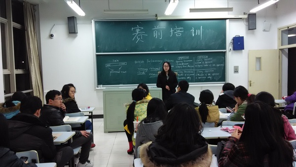 此次辩论赛阵容庞大、影响广泛,包括来自全校各院系24支队伍共48人,可谓历届之最。本次参赛对象不仅有本科生而且涵盖研究生层面。辩论赛的最大亮点还在于其独特的辩论形式和丰富多彩的辩题内容,即英国议会式的辩论方式和涉及人类、法制、社会等多层面的辩论主题。培训中,英语演讲与辩论社的同学详细讲解比赛具体流程以及注意事项。之后,选手们积极提问,全场互动高潮迭起。
