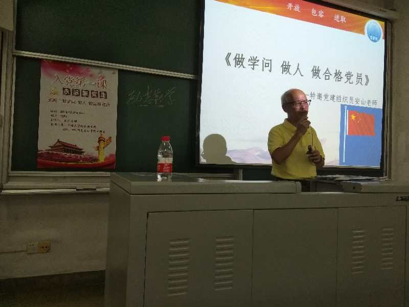 安山老师从"做学问、做人、做合格党员"三个角度进行了报告。首先,在做学问方面,安老师向同学们提出"励志勤学"的倡议。他强调了学习态度的重要性,指出进入大学后不应该放松对自己的要求,不能把时间浪费在网络上。安老师认为,现在是求学的好时机,同学们要像海绵吸水一样吸收知识,心无旁骛专心学习才能获得无悔的青春,顺境逆境都是宝贵的财富。