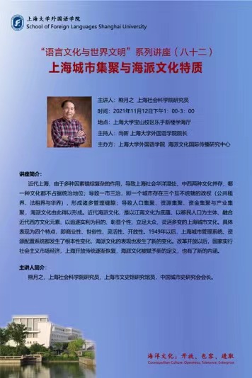 “语言文化与世界文明”系列讲座(八十二)上海城市集聚与海派文化特质