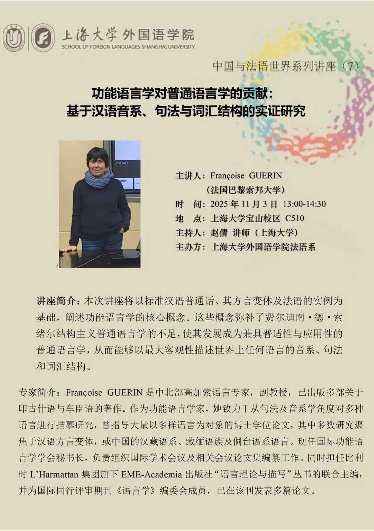 中国与法语世界系列讲座(7):功能语言学对普通语言学的贡献:基于汉语音系、句法与词汇结构的实证研究