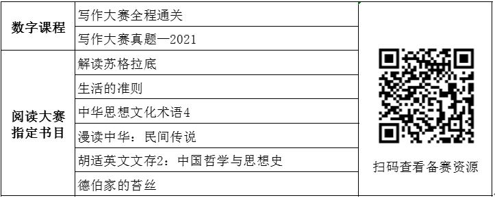 为帮助选手们更好地备赛,大赛组委会在U等生APP“外研社·国才杯”板块推出系列备赛课程,邀请知名写作专家与往届优秀选手指点方法、分享经验;同时,依据大赛考查能力要求,组委会精心甄选备赛推荐书目,敬请关注。